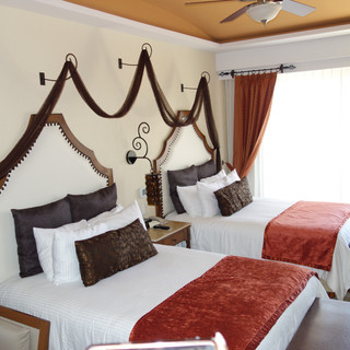 We started out viewing a room that was a “Junior Suite Ocean View” and it was set up with two double beds. As you can see from my photos, it is a long way from the beach but it does have the ocean view. I did like that it had a magic or secret box where you can get your room service items delivered without being disturbed. I thought it was a fun feature of the room. This is a resort that caters to couples because the bathroom layout was a bit different. There is no door so the bathtub can be seen from the bed and the shower has an open window to the bedroom. There is a sliding wooden door that will cover the shower window for privacy.